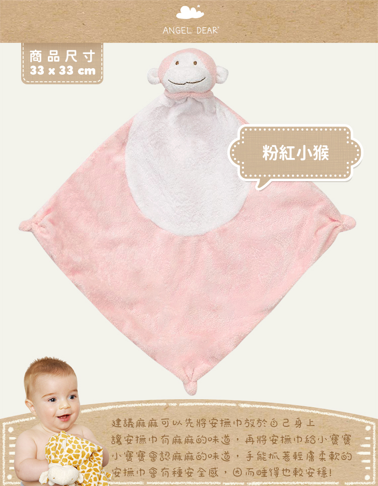 ANGEL DEAR 嬰兒安撫巾 (粉紅小猴)