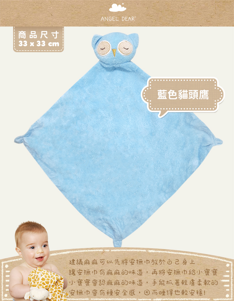 ANGEL DEAR 嬰兒安撫巾 (藍色貓頭鷹)