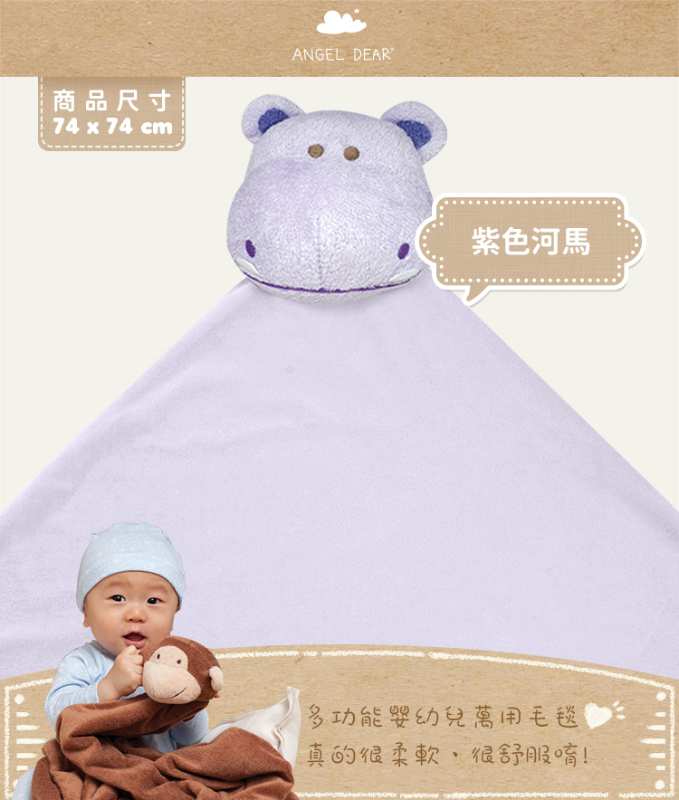 ANGEL DEAR 安撫毛毯 (紫色河馬)
