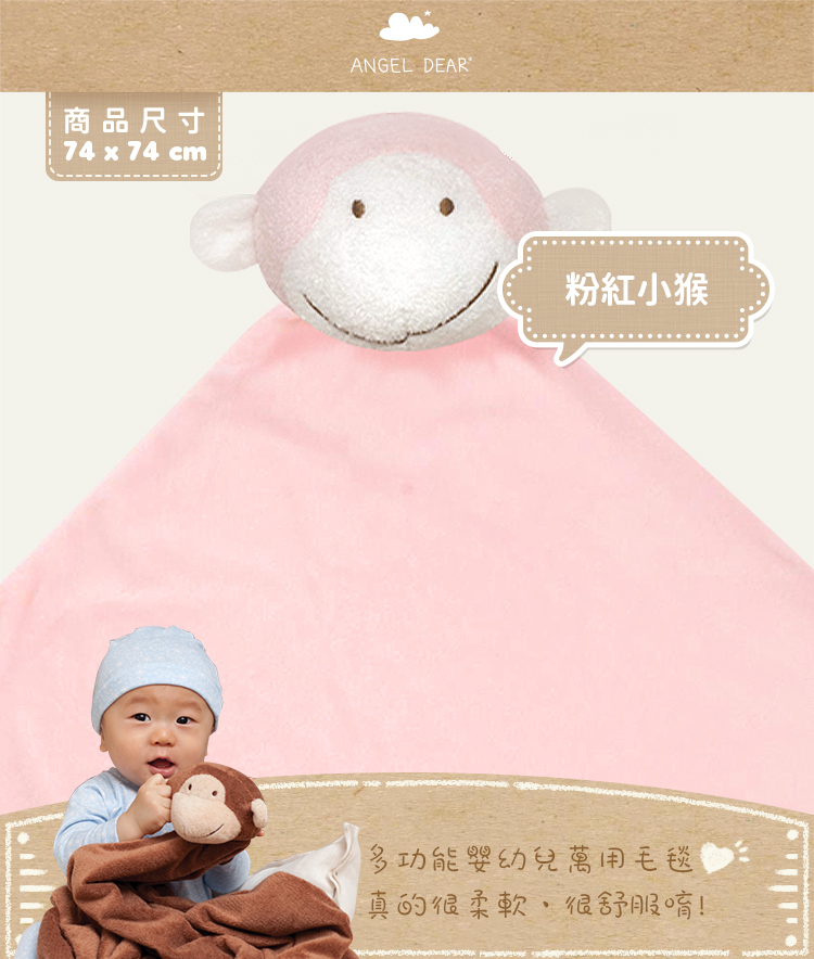 ANGEL DEAR 安撫毛毯 (粉紅小猴)