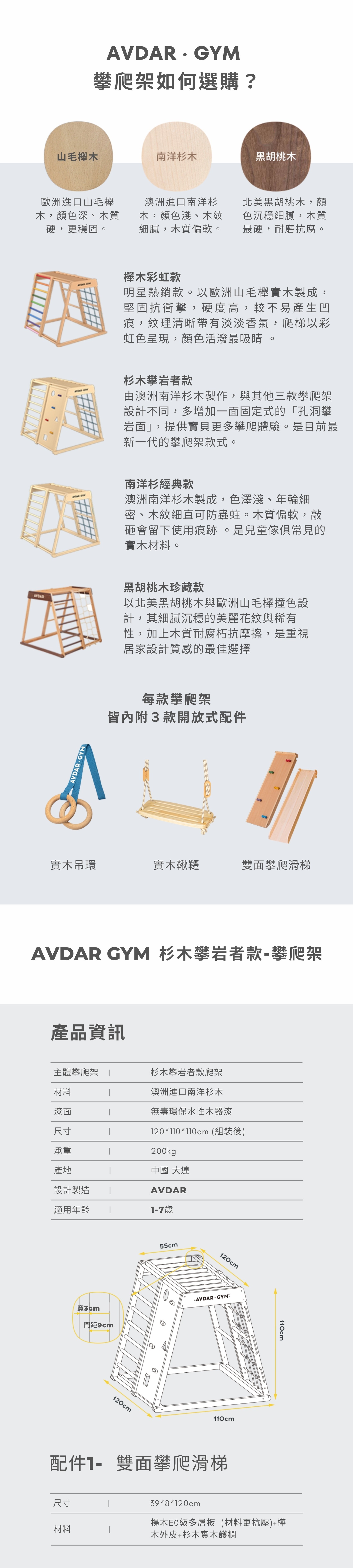 💡 開放式配件:鞦韆、滑梯、攀岩面,自由變換位置