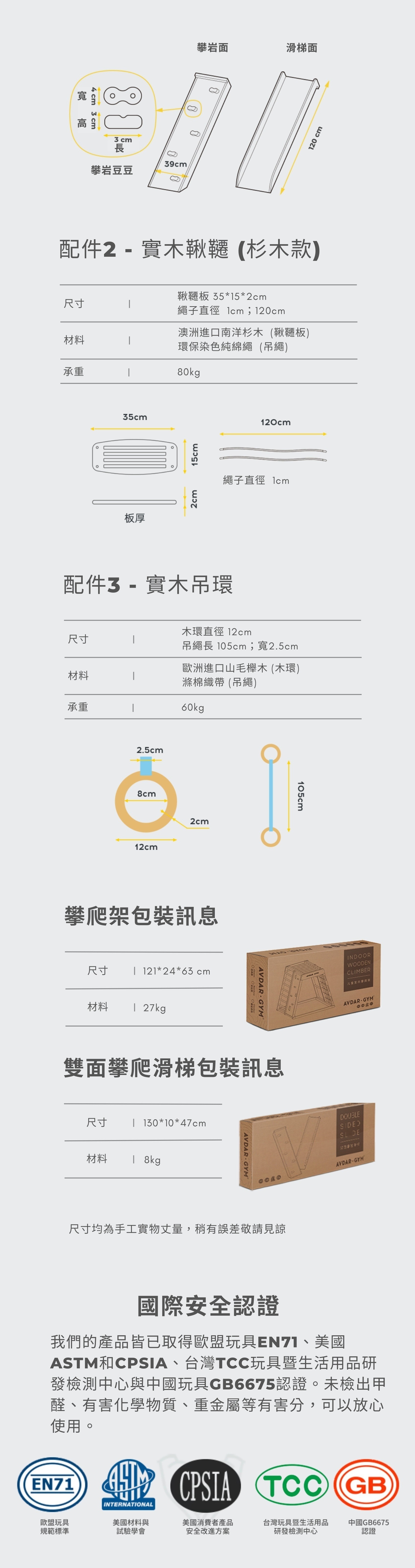 組合內附:雙面攀爬滑梯、鞦韆、吊環