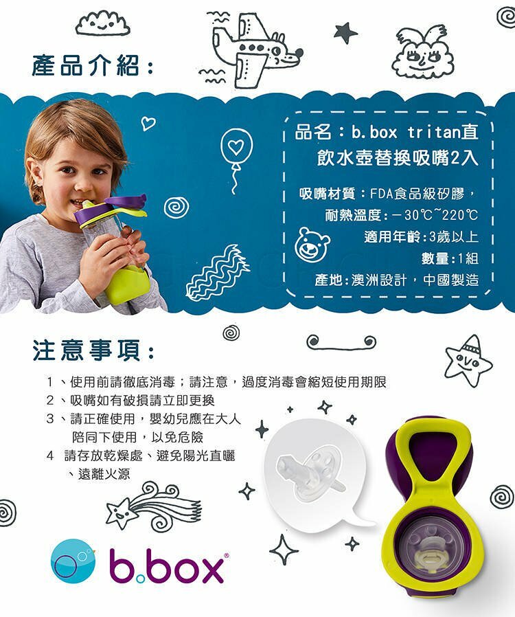 品名 : b.box Tritan直飲水壺替換吸嘴兩入