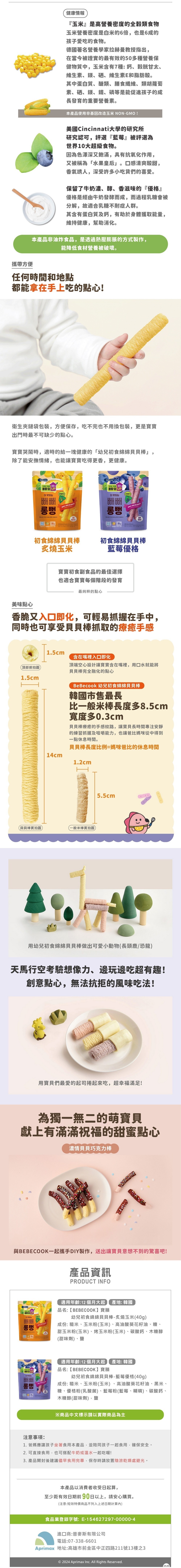 ★ 非油炸食品,精選孩子們最愛的藍莓與香噴噴烤玉米口味