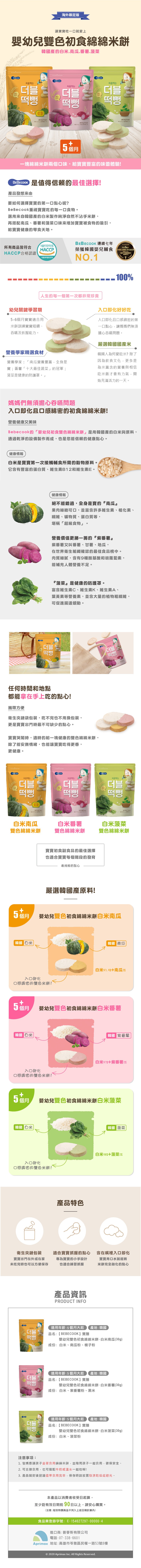 【BEBECOOK】寶膳 嬰幼兒雙色初食綿綿米餅-白米菠菜(30g)