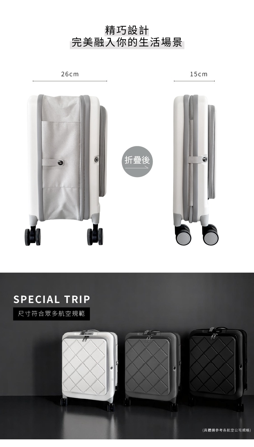 ★彈性容量|有些款式折疊厚度可調整,展開後容量充足,短途2~4天旅行衣物足夠裝載。