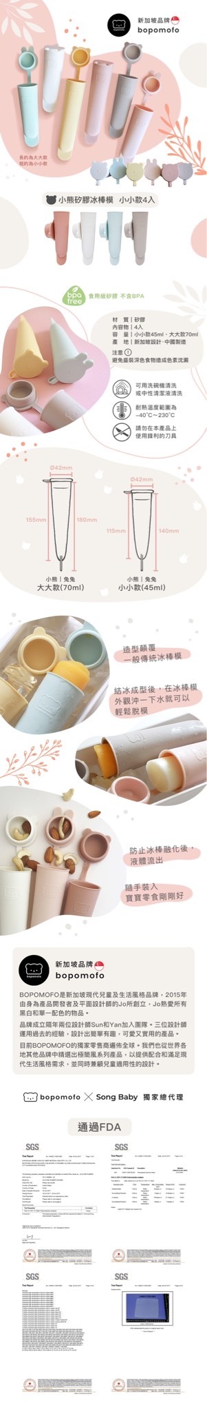 新加坡bopomofo 小熊矽膠冰棒模-小小款4入