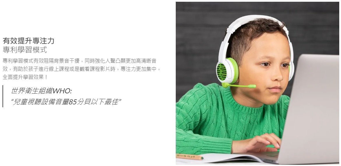 無線藍牙裝置可以帶來自由移動的絕佳便利性,搭配獨立高感度麥克風以及結合專利學習模式,有效阻絕外界干擾, 讓孩子們更能長時間集中學習專注力。同時,採用柔軟透氣防汗耳罩,完美貼合耳朵,就算長時間佩戴仍倍感舒適,也不會感到壓迫。