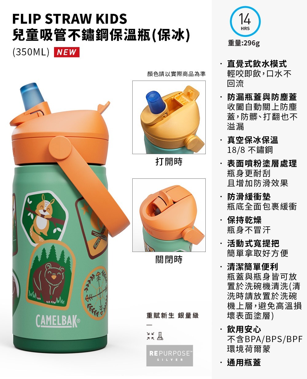 CamelBak 350ml Flip Straw兒童吸管不鏽鋼保溫瓶(保冰) 歡樂露營