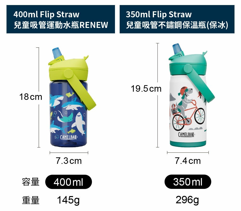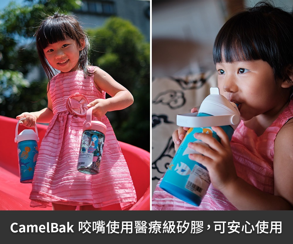 CamelBak 新推出 Flip Straw 兒童吸管運動水瓶,每季推出不同設計圖案及配色,讓大小朋友都愛不釋手。全系列水瓶保證不含環境賀爾蒙 BPA「雙酚A」,並符合歐盟食品容器規範及兒童用容器標準、並符合美國 FDA 認證為安全容器。針對兒童設計的特殊咬嘴,不會因孩童的啃咬而脫落,咬嘴為醫療級矽膠製作,可自動閉合,小朋友的口水不會回流到水瓶中。使用起來安心、安全無負擔!