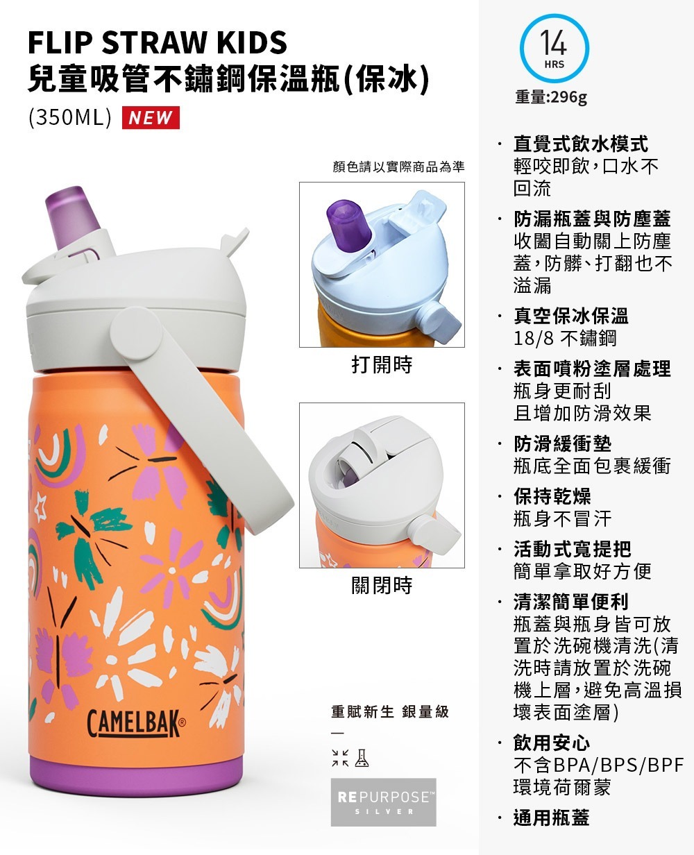 CamelBak 350ml Flip Straw兒童吸管不鏽鋼保溫瓶(保冰) 蝶舞彩虹