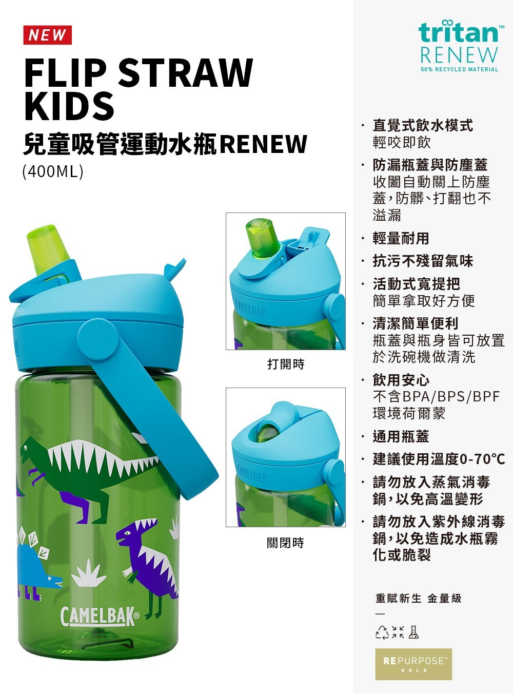 CamelBak 400ml Flip Straw 兒童吸管運動水瓶RENEW 嘻哈恐龍