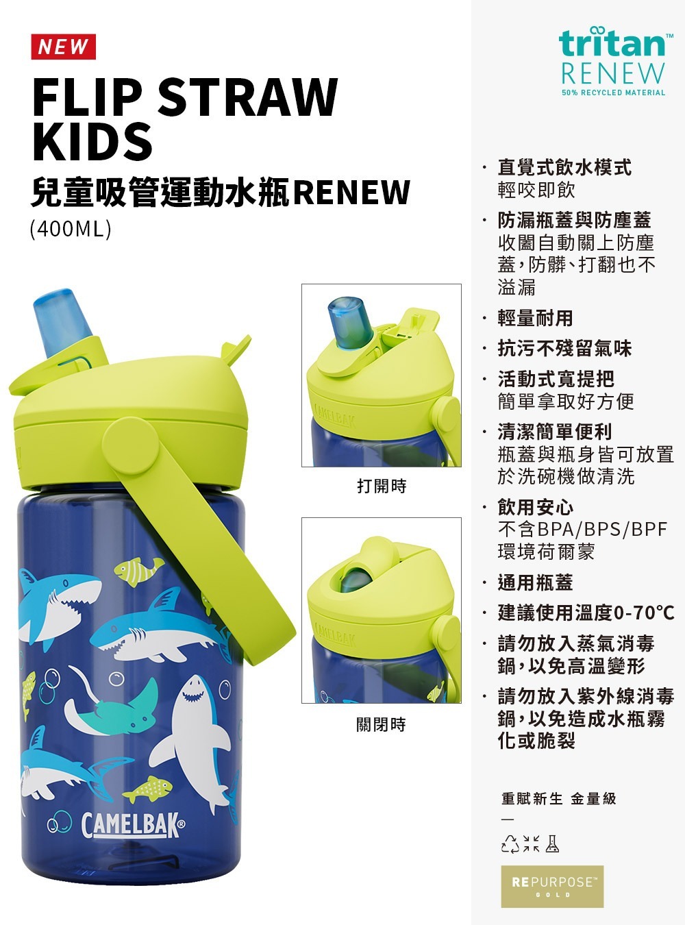 CamelBak 400ml Flip Straw 兒童吸管運動水瓶RENEW 鯊魚樂園