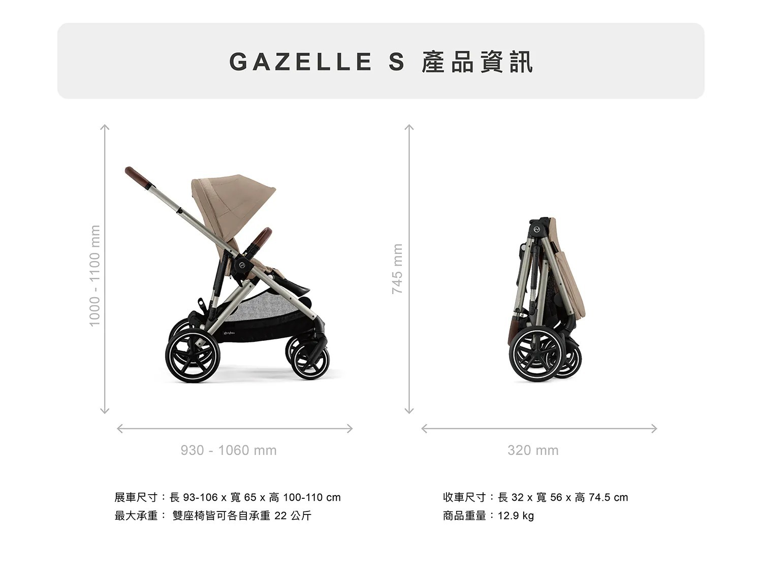 ◆商品尺寸:展車長 93-106 x 寬 65 x 高 100-110 cm、收車長 32 x 寬 56 x 高 74.5 cm