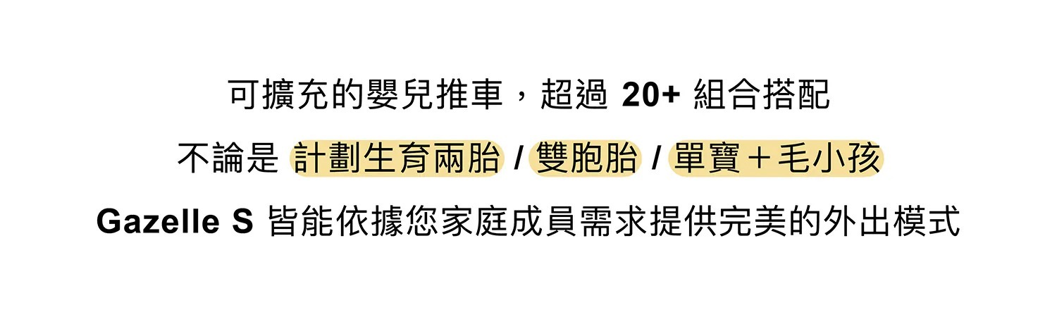 ◆ 超過20種搭配組合,符合不同家庭所需的外出模式