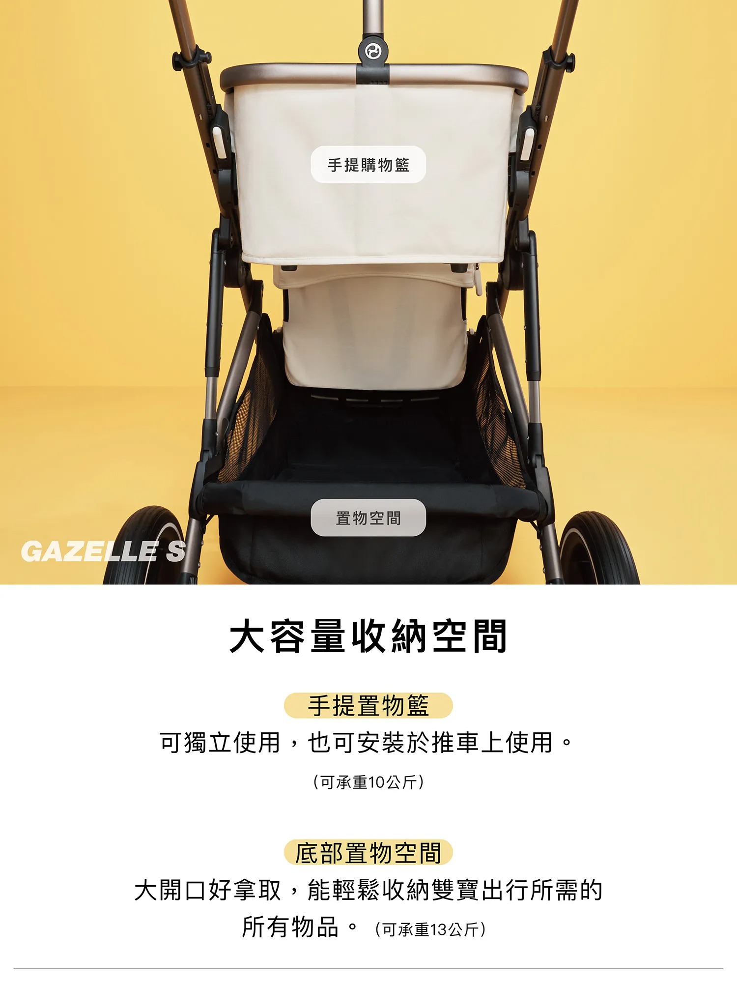 ◆內容物:Gazelle S 車架一件、主座椅一件、手提購物籃一件