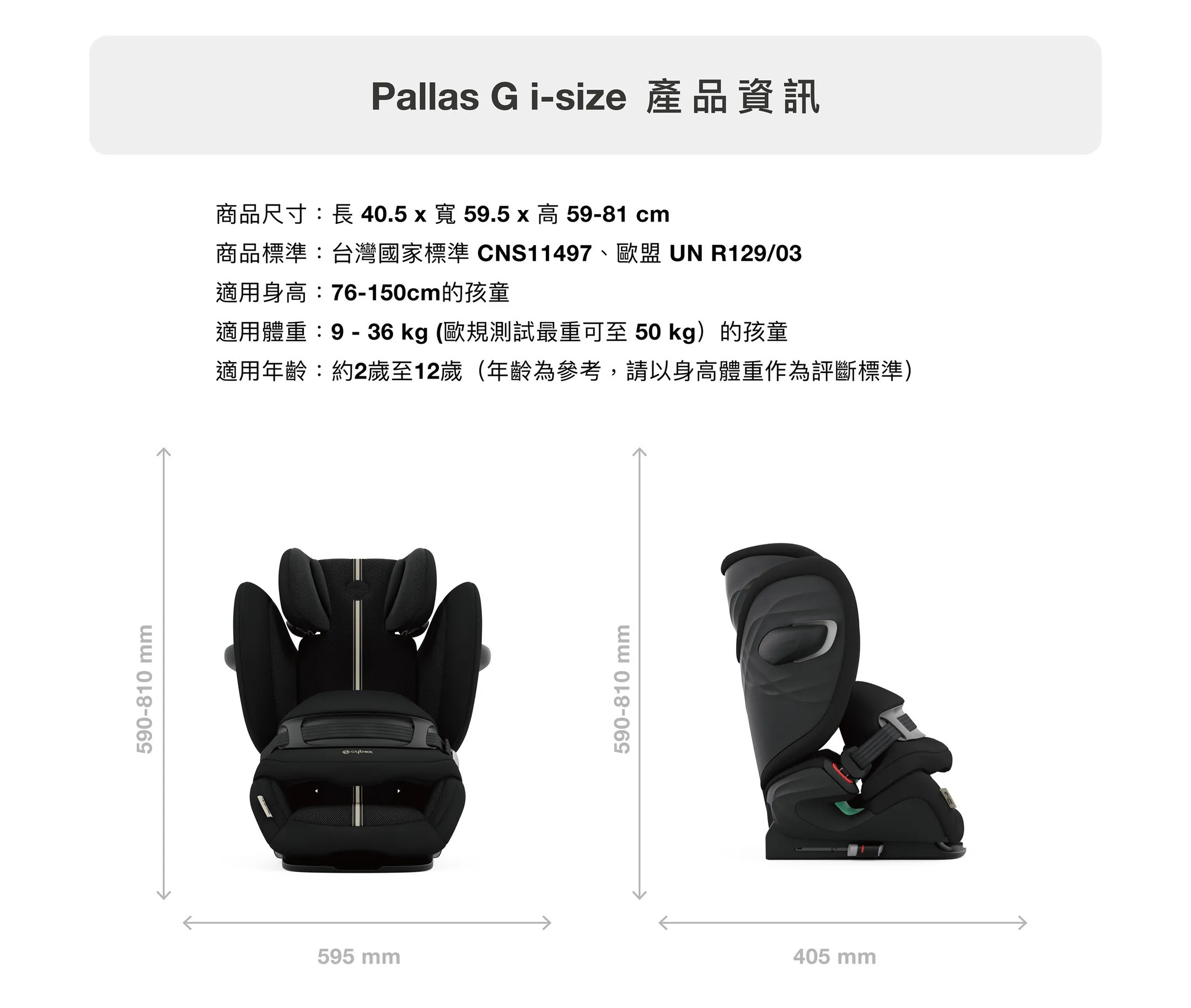 ◆內容物:Pallas G i-Size汽車安全座椅 一件
