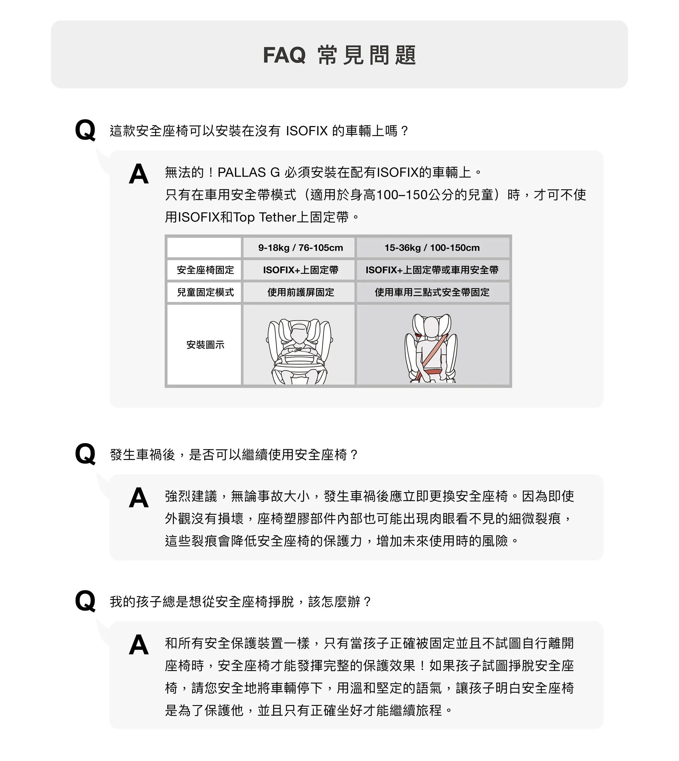 * 本商品為前向安裝設計,依台灣法規規定,兩歲以下兒童須使用後向式安全座椅,請家長特別注意。
