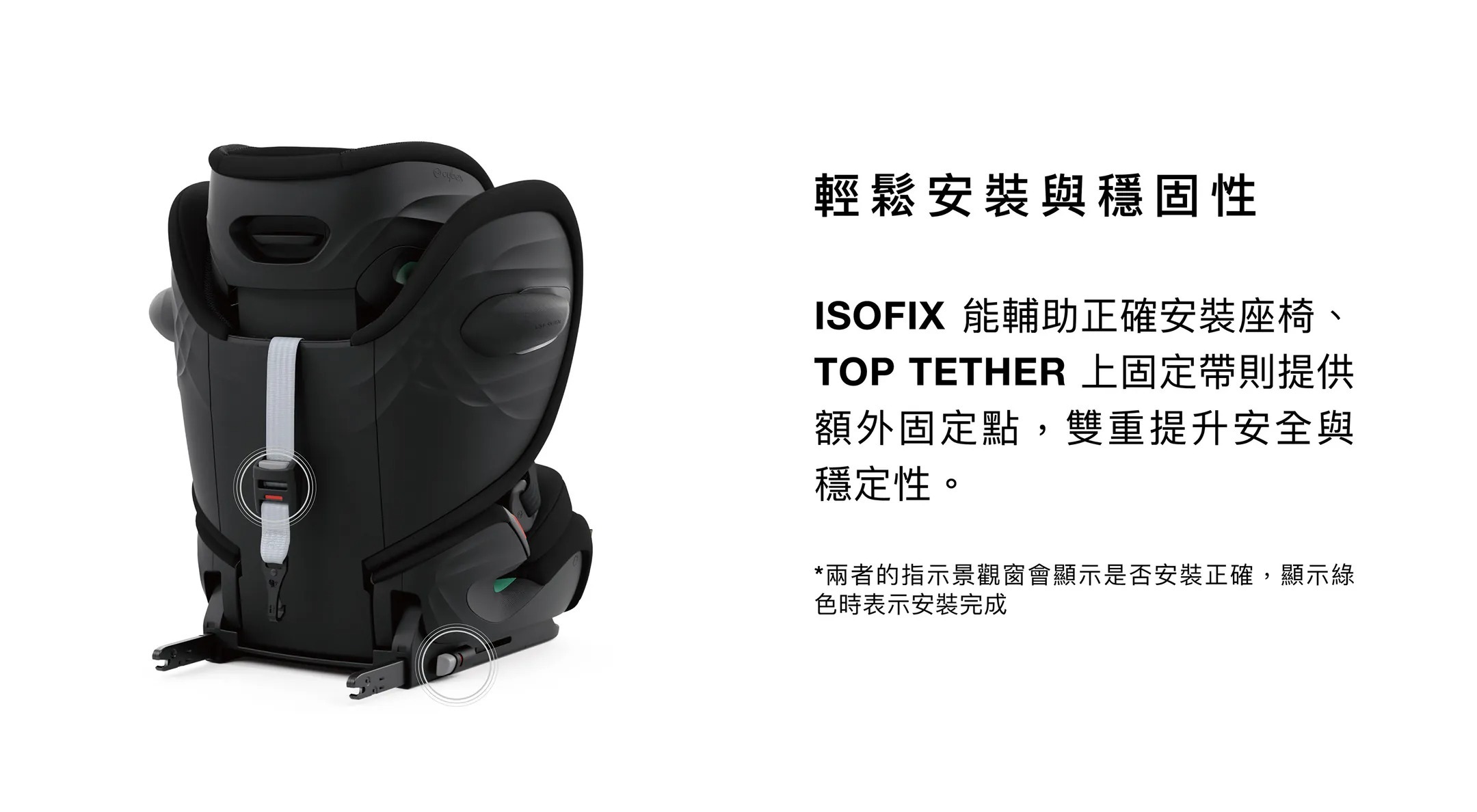 ◆安裝方式:前向安裝(ISOFIX + TOP TETHER 固定)