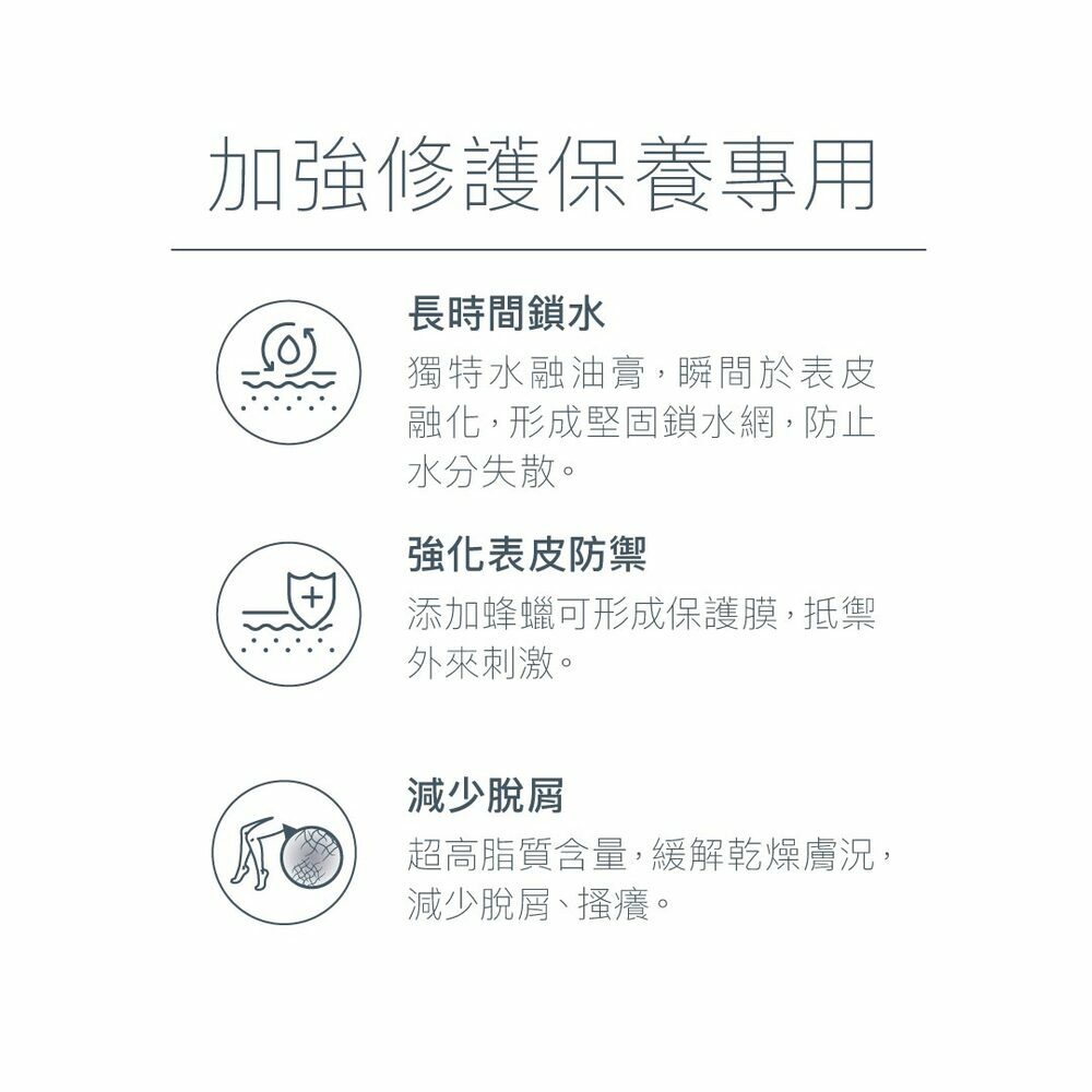 修護肌膚、保濕補水、舒緩乾燥、安撫搔癢