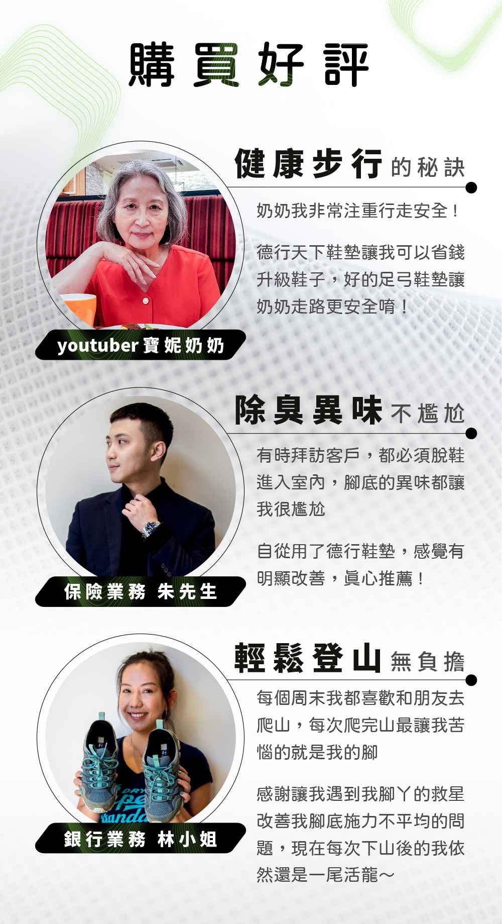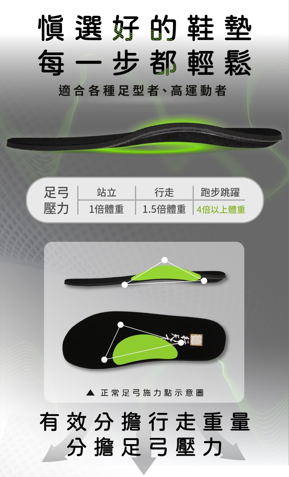 .適用情形:長途、久站、搬重、運動健走、登山、樂齡保養