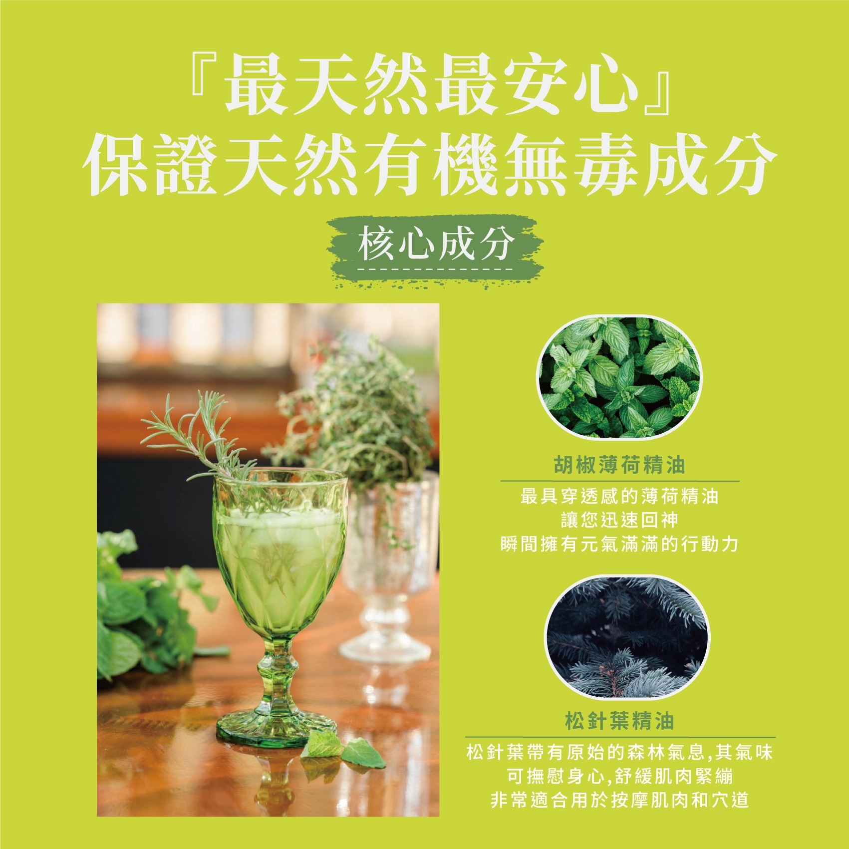 主要成分: 胡椒薄荷精油,松針葉精油