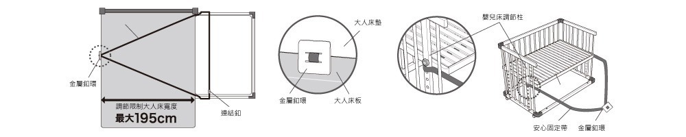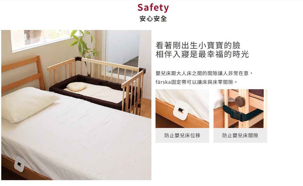 1. 安全固定嬰兒床與大人床,防止嬰兒床位移