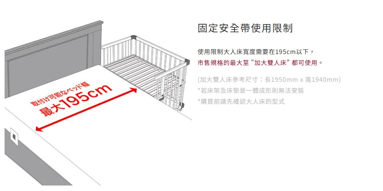 3. 安全帶的長度最大可適用至加大雙人床
