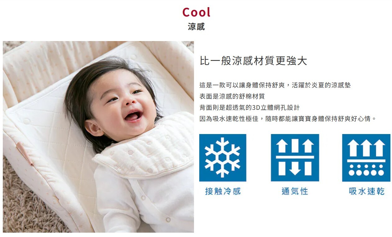 照顧容易流汗的寶寶、可替換涼感保潔墊即使髒了也放心。