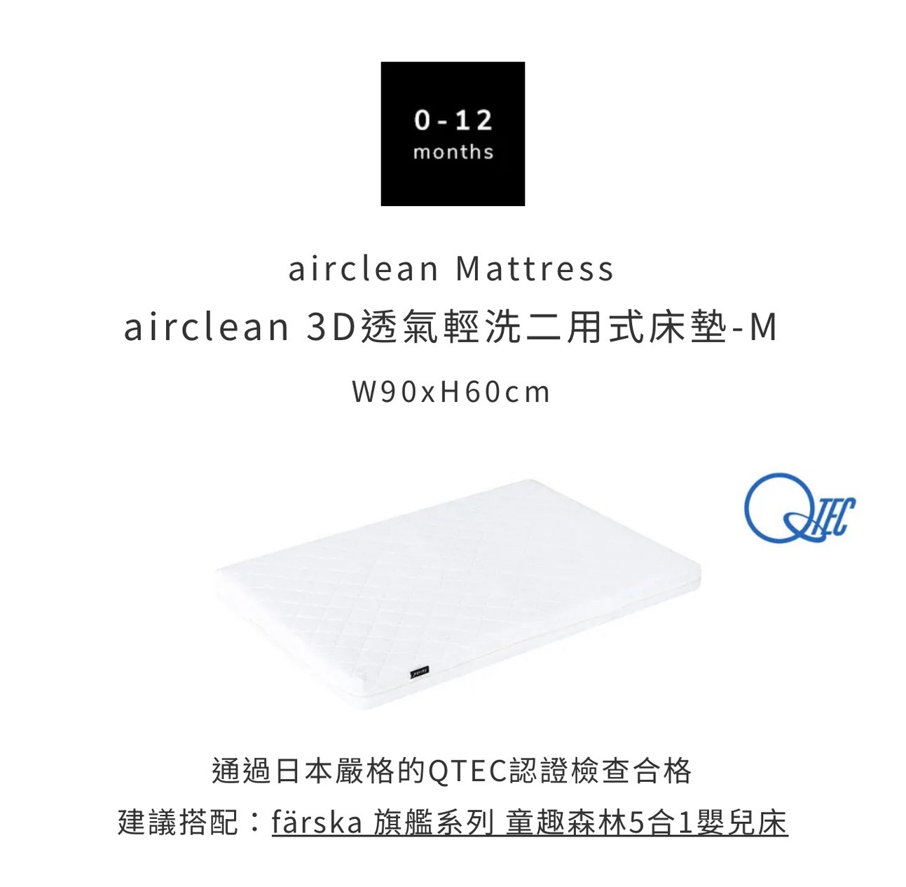 床墊尺寸:W60×D90×H6cm