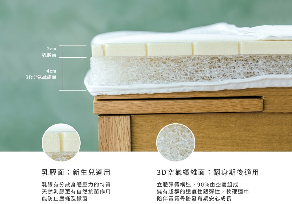 ▪ 業界首創 - 4公分3D纖維床墊 + 2公分天然乳膠