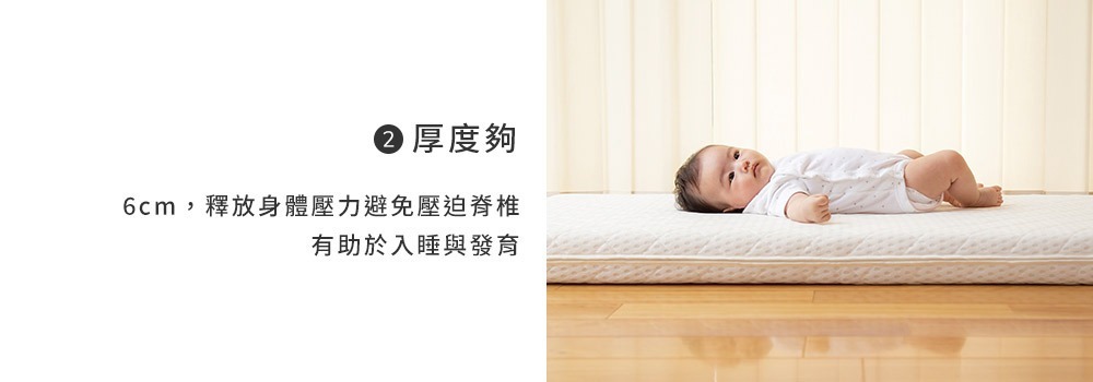▪ 6cm厚度 - 避免壓迫寶寶脊椎發展,有助入睡及發育