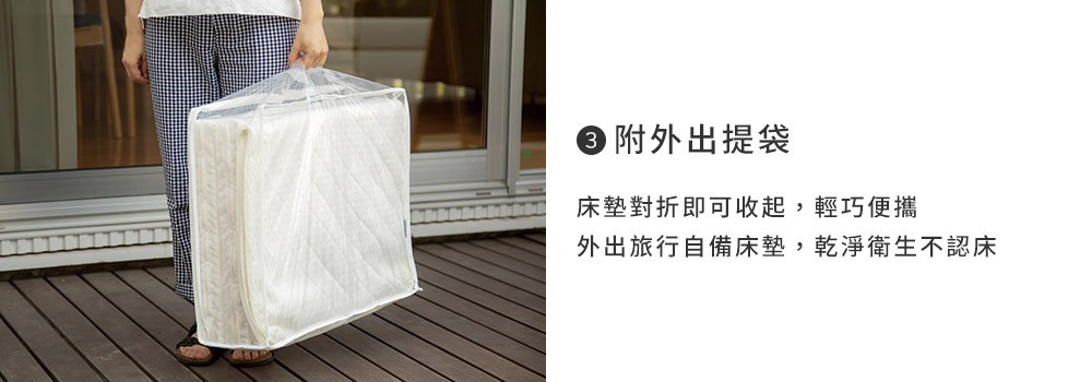 購買即附塑膠提袋,輕巧方便攜帶外出旅行,不共用床墊,乾淨衛生不認床