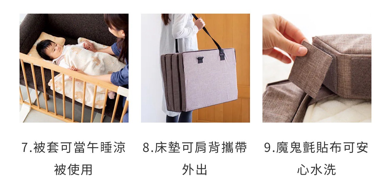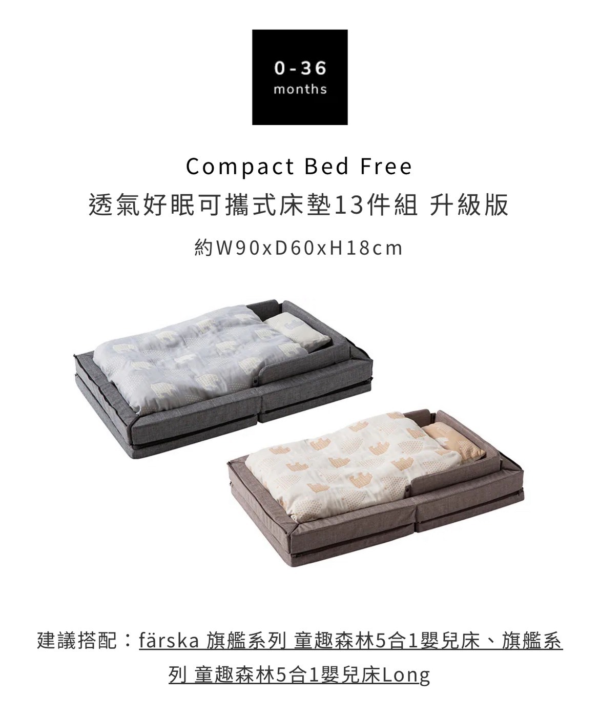 升級款旗艦系列的床墊組,方便攜帶及外出移動,不論是家中各處,如寢室、客廳或是外出住宿,隨時隨地給予寶寶優質且安心的睡眠環境。