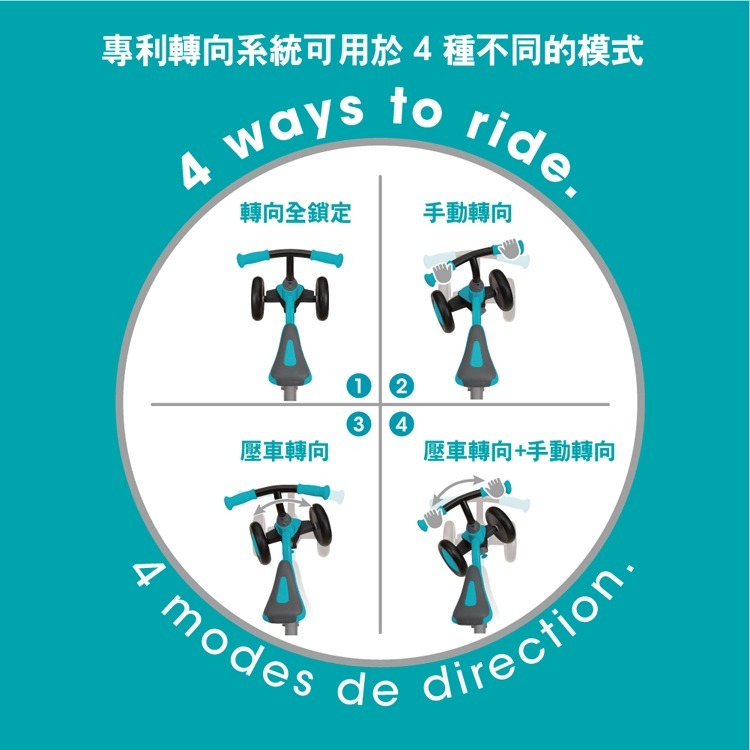 提供4種專利轉向模式,適合1歲以上剛開始學走路的寶寶。