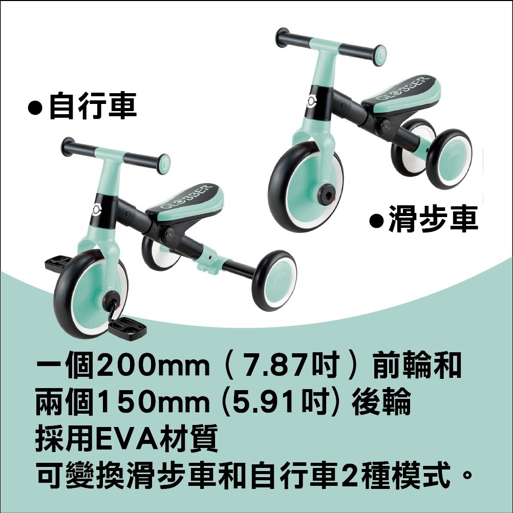 GLOBBER LEARNING TRIKE 2合1多功能滑步腳踏車-經典薄荷綠