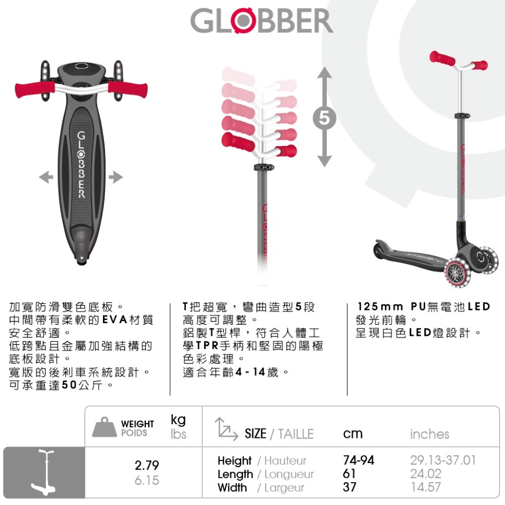 ※規格及重量以實車為準,GLOBBER原廠保留規格變動權利。