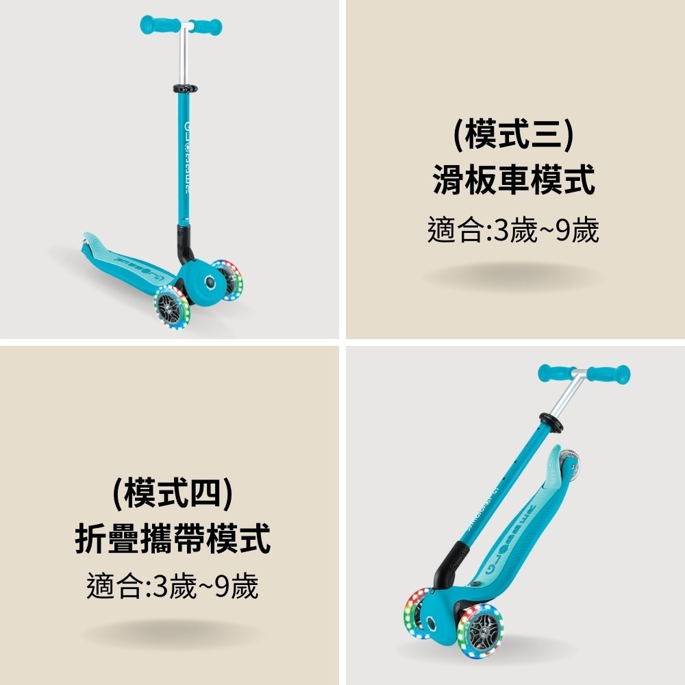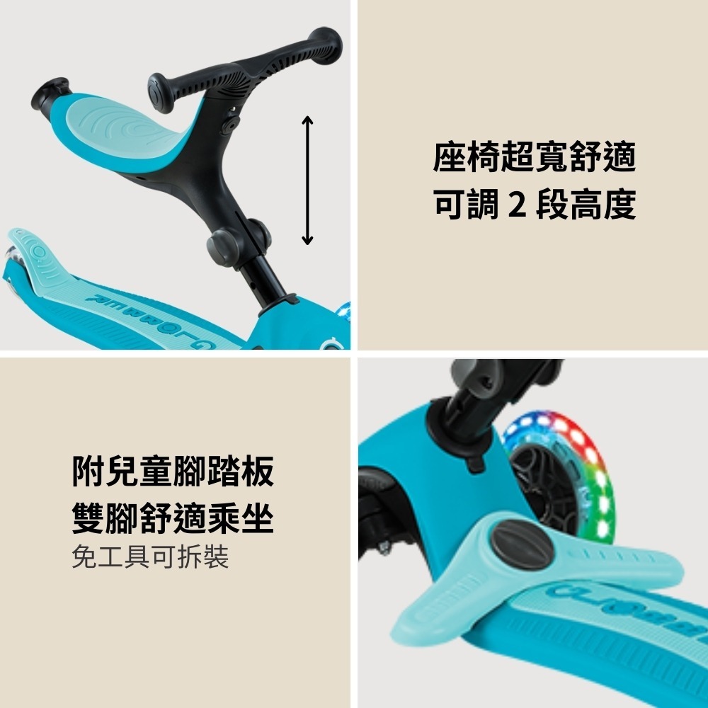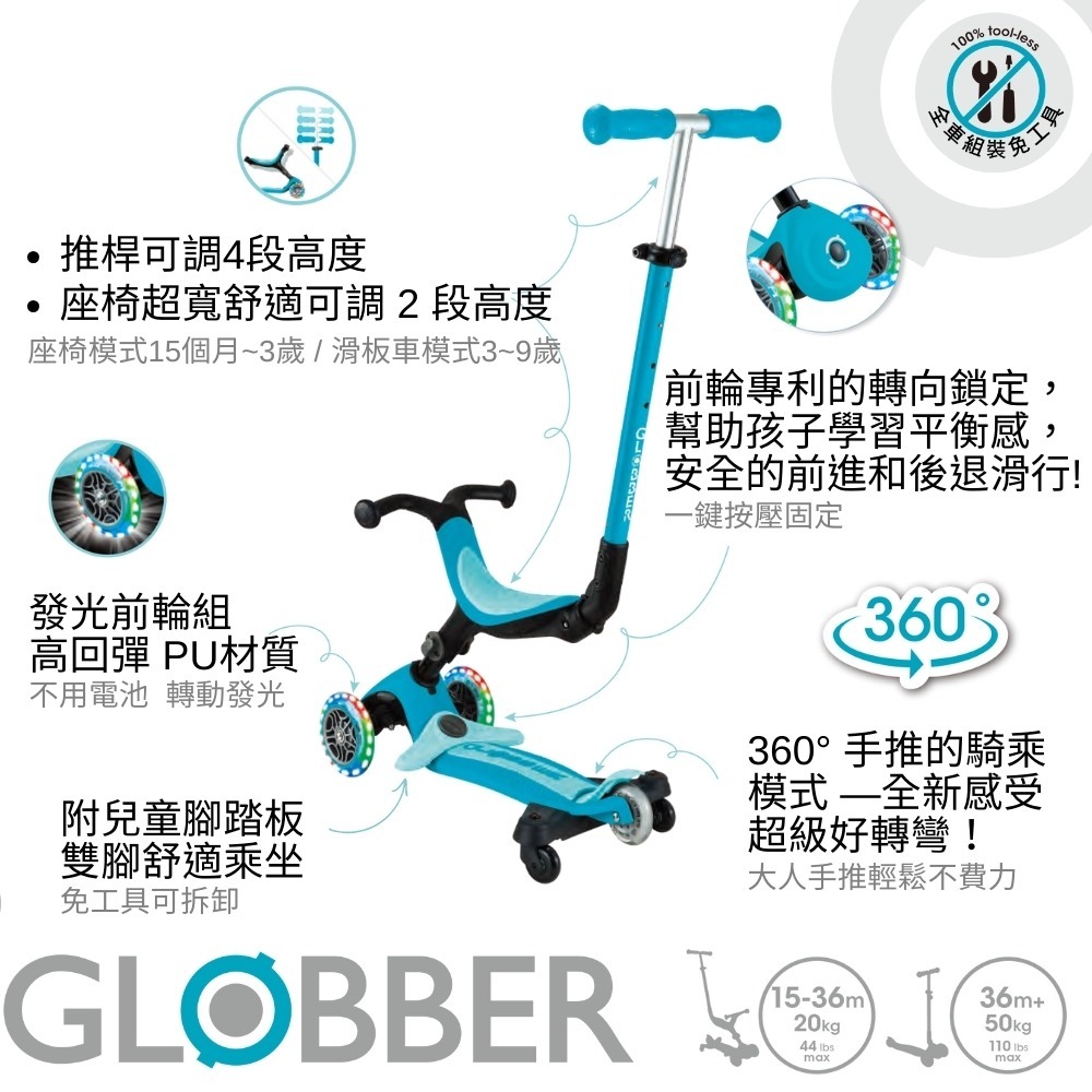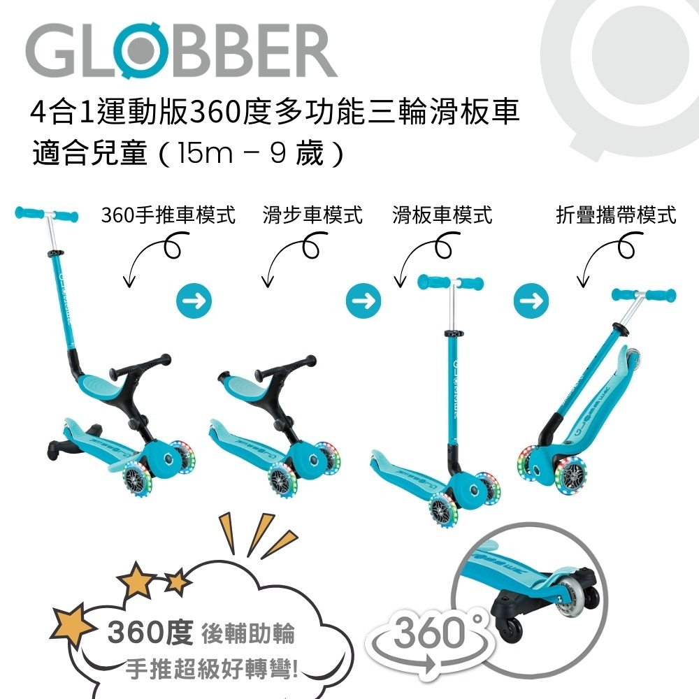 GLOBBER GO•UP 4合1運動版360度多功能三輪滑板車(LED發光前輪)-水藍色