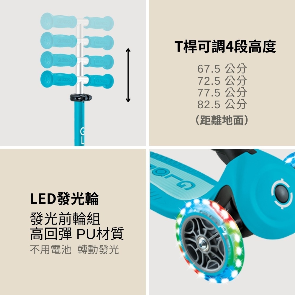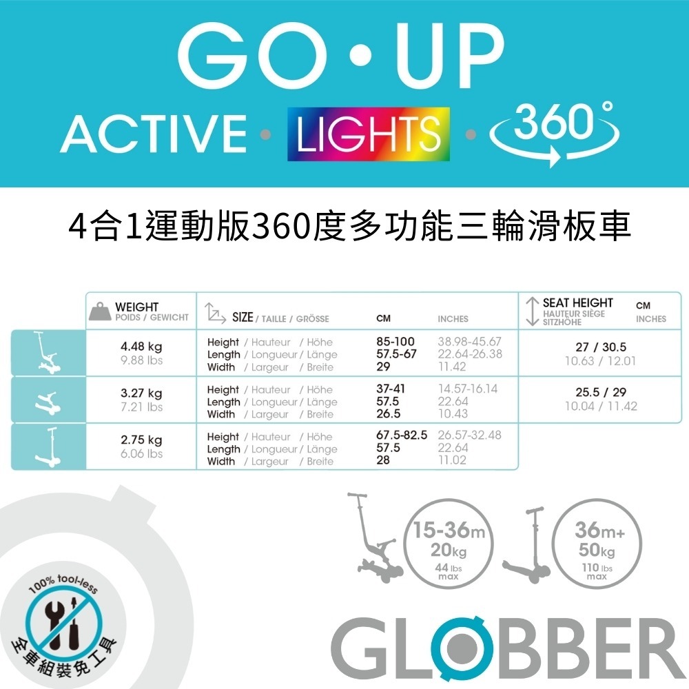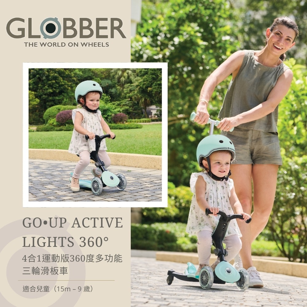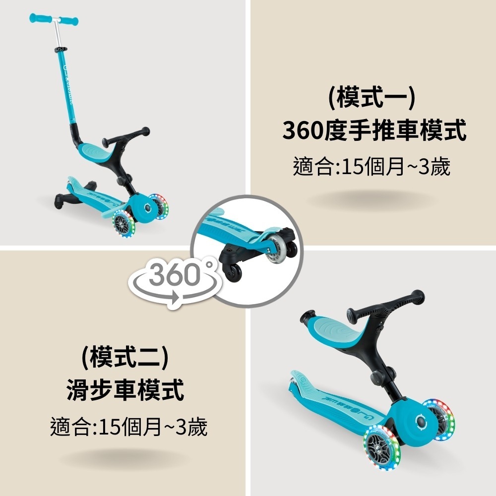 GLOBBER GO•UP 4合1運動版360度多功能三輪滑板車(LED發光前輪)-水藍色
