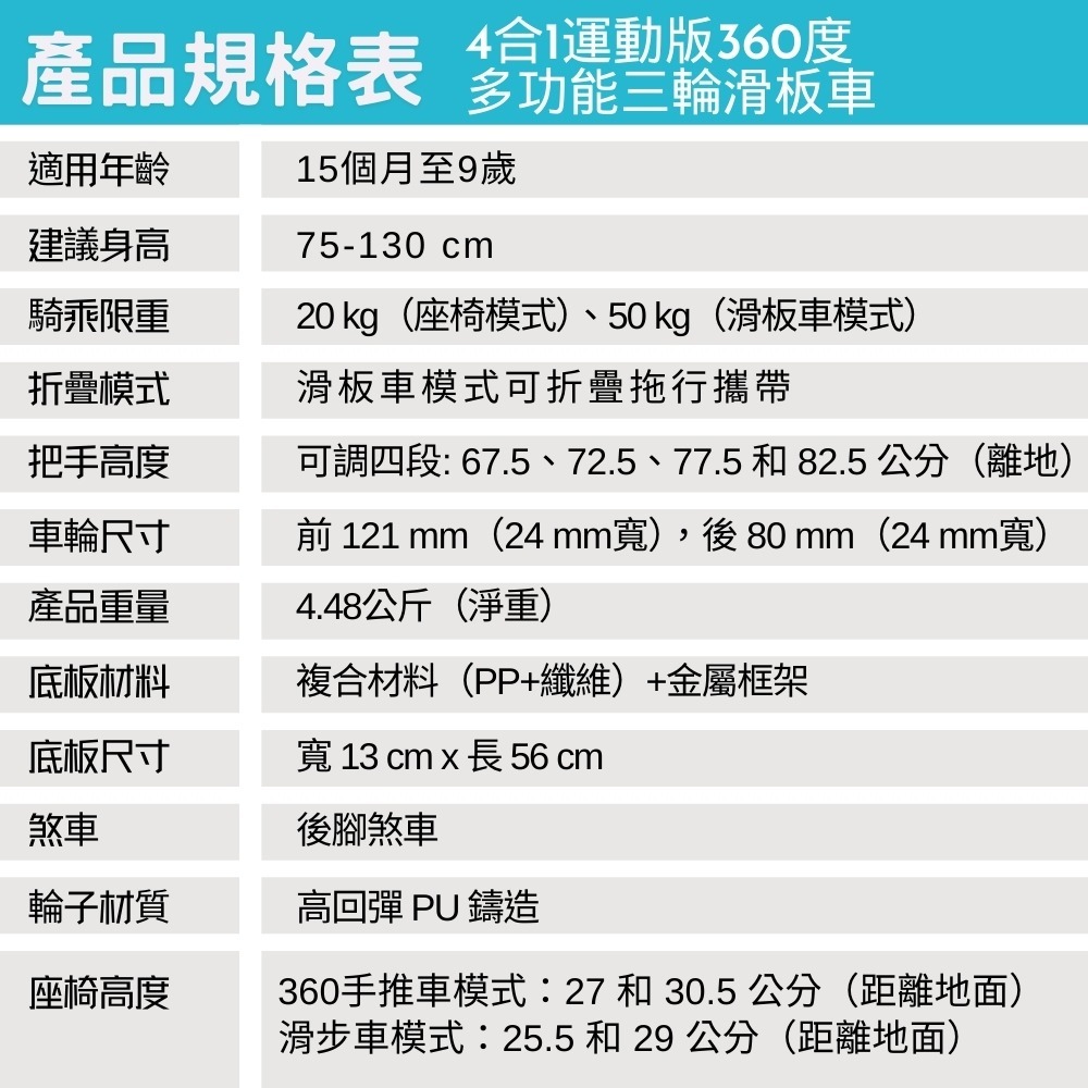規格及重量以實車為準,GLOBBER原廠保留規格變動權利。