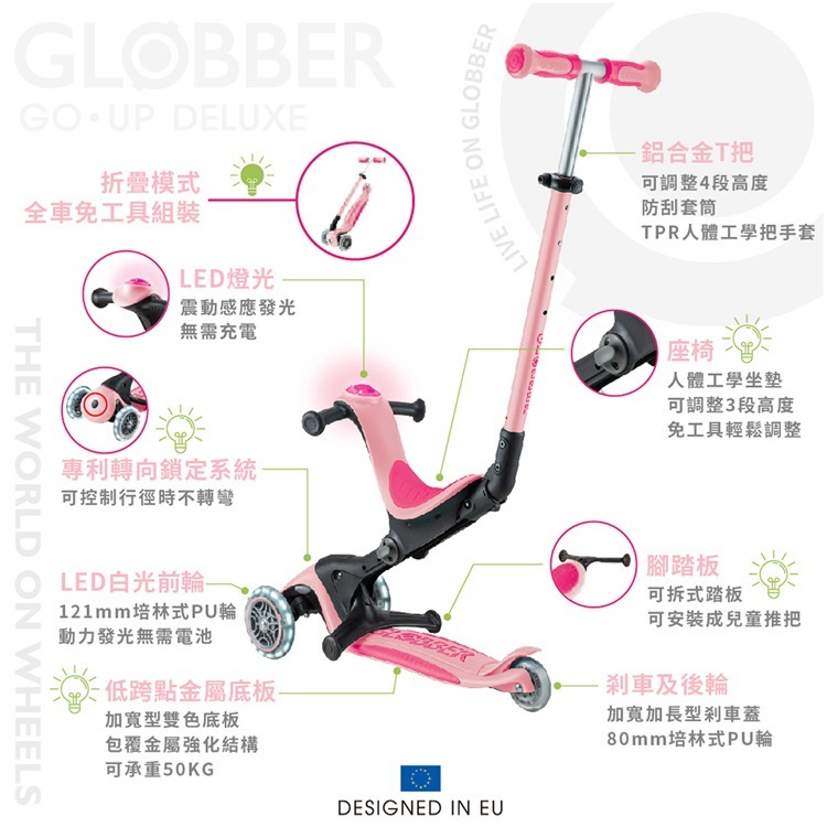 ※法國GLOBBER品牌近幾年因應歐盟環保政策,包裝逐漸更改採用無塑包裝,運送過程中內部包裝紙材可能