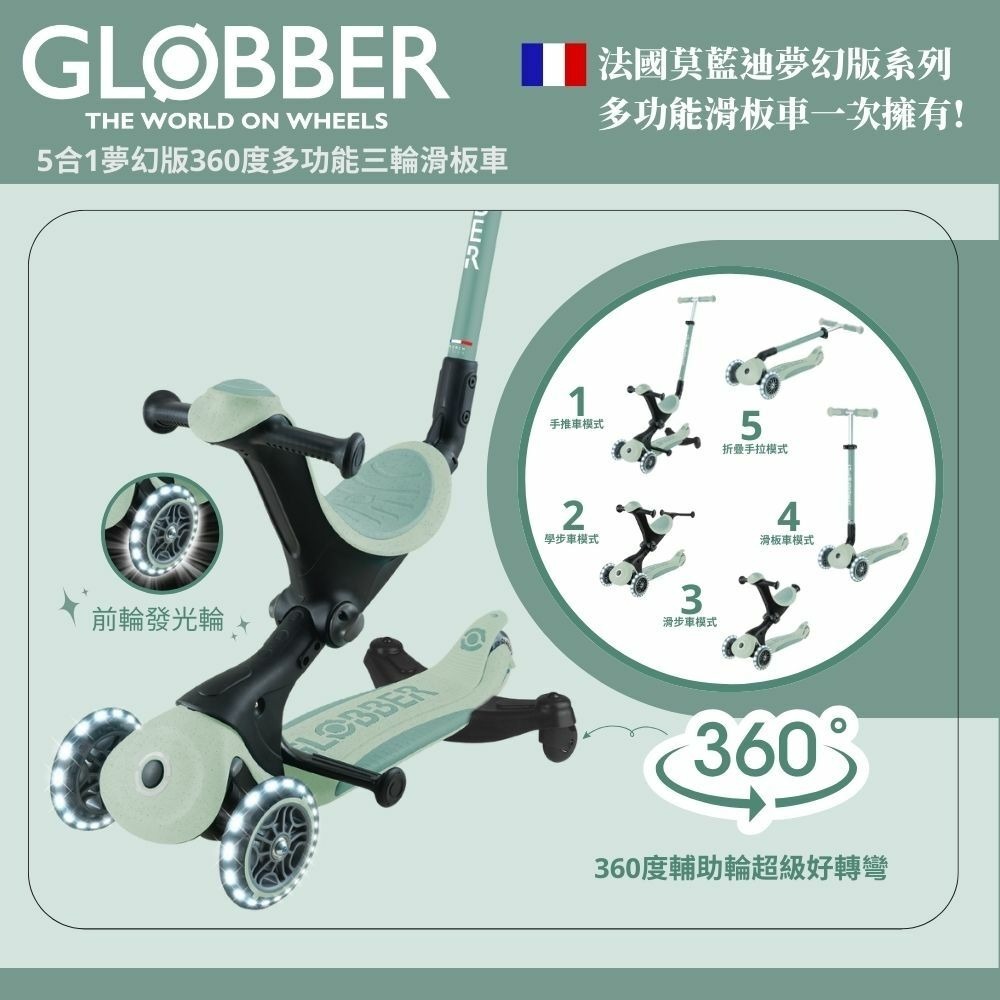 GLOBBER GO•UP 5合1夢幻版360度多功能三輪滑板車(白光發光前輪)-大地森林綠