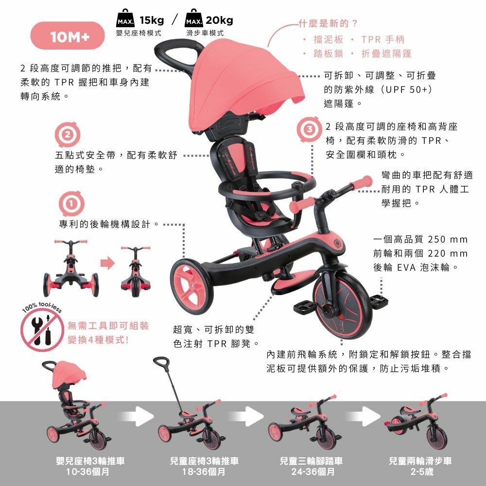 GLOBBER 4合1 Trike多功能3輪推車經典升級版-玫瑰粉