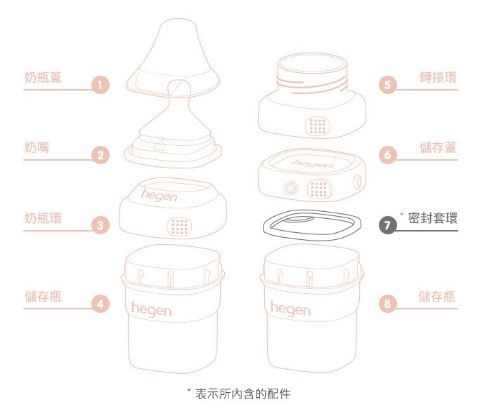 如:擠乳器壓頭、儲存蓋與轉接環等