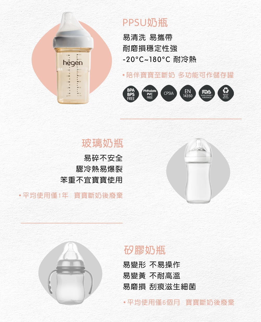 hegen 產地位於全世界最大奶瓶製造地-馬來西亞,擁有世界級認可最專業的fitson製造大廠。