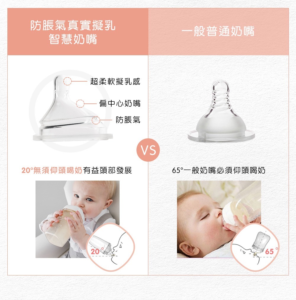 ▪20°偏中心奶嘴設計,最輕鬆的喝奶角度