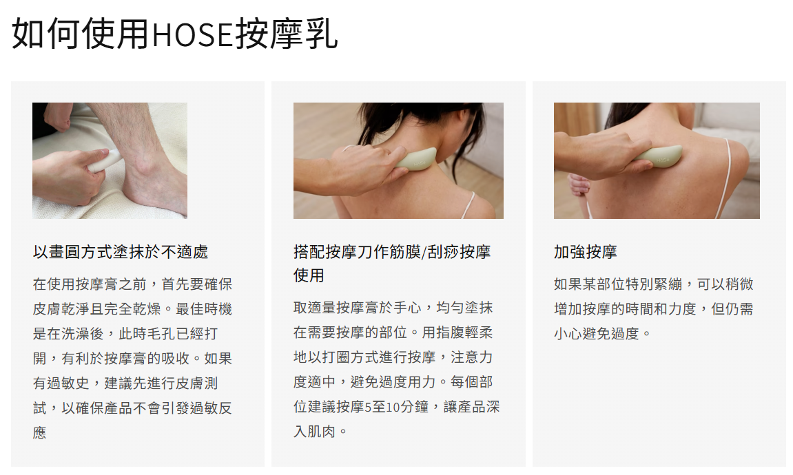 可在需按摩處先上按摩乳再上舒緩膏可讓(冰涼/溫煦)體感更持久。