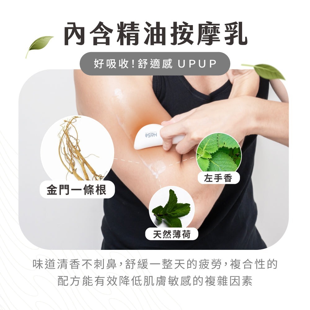 可在需按摩處先上按摩乳再上舒緩膏可讓(冰涼/溫煦)體感更持久,搭配按摩刀做按摩使用。