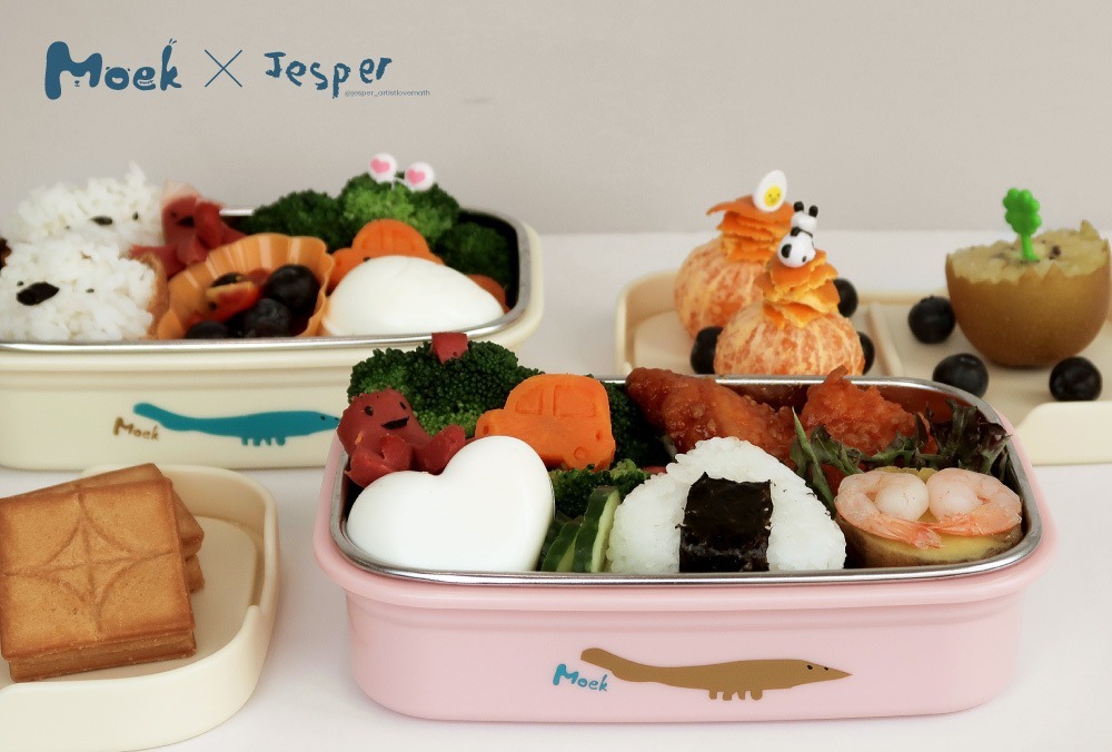 1. 不鏽鋼餐盒 2. PP聚丙烯外殼 3. 樂扣上蓋 |