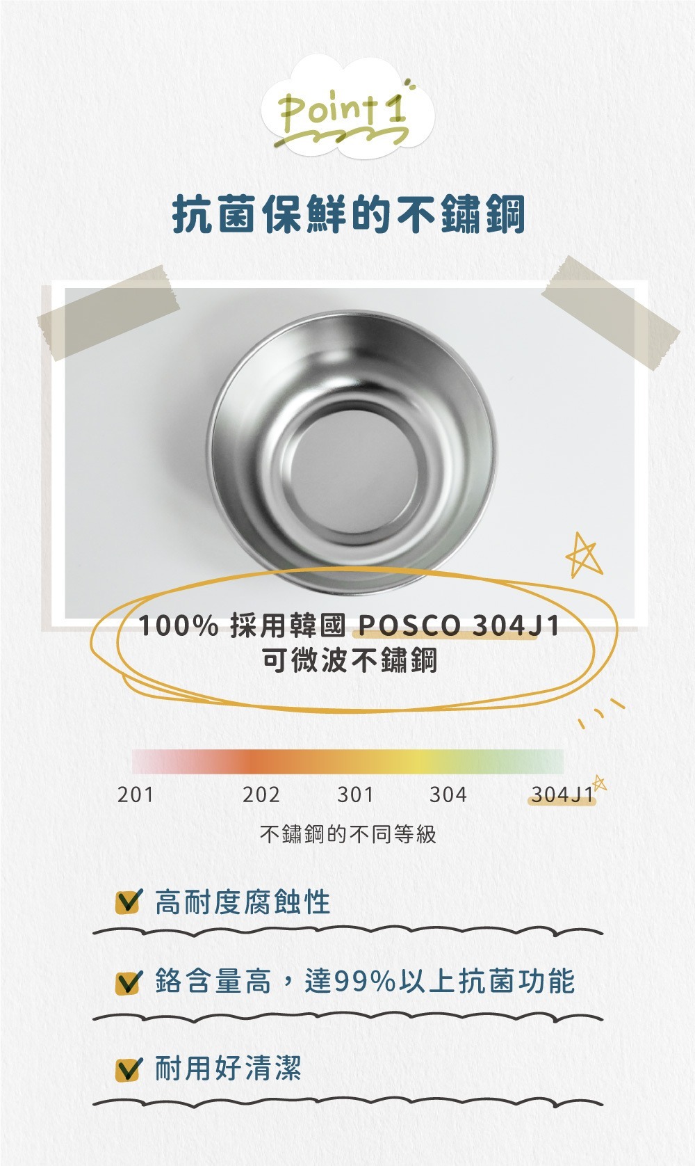1. 不鏽鋼小粥碗 2. 防燙甜甜圈殼 3. PP聚丙烯上蓋 |